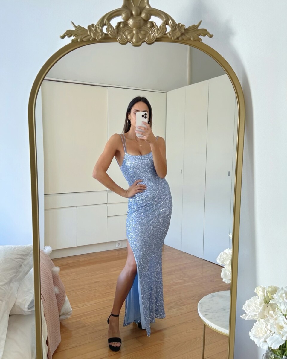 Vestido Lentejuelas Elástico Largo