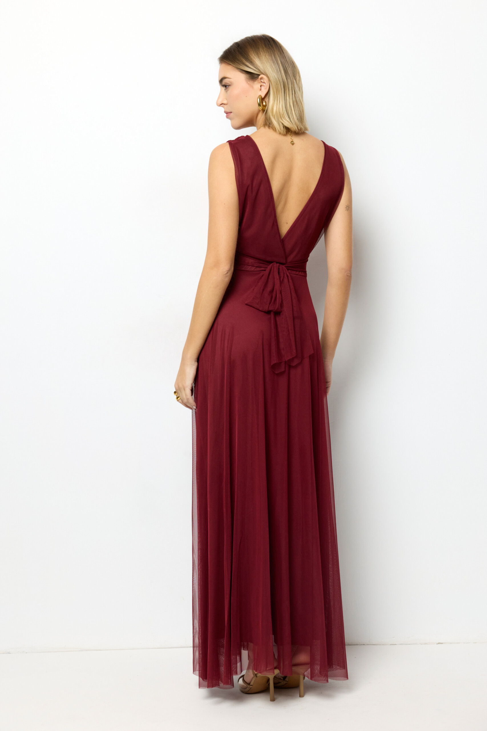 El tejido de tul empleado no solo aporta ligereza y una textura delicada, sino que también garantiza durabilidad y resistencia al desgaste, permitiéndote usar el vestido en múltiples ocasiones sin perder su forma ni elegancia. La confección de alta calidad asegura que el vestido mantenga su estructura y color, incluso después de varios usos, lo que representa una inversión inteligente en tu guardarropa.